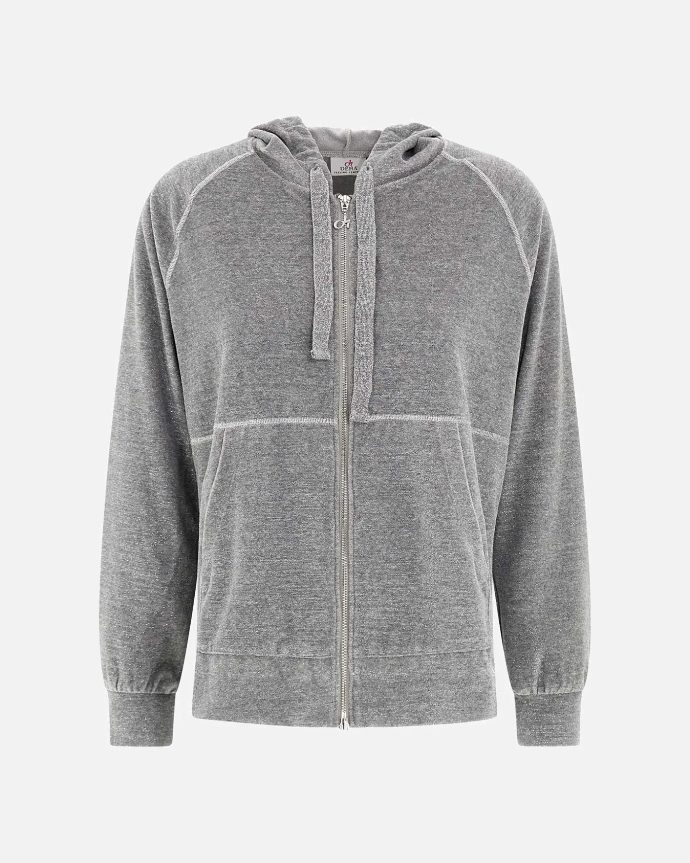 Felpa in ciniglia e lurex con cappuccio e coulisse regolabile, zip doppio cursore e tasca a marsupio. Questo capo è si adatta facilmente ad ogni occasione della giornata, dall’attività fisica al tempo libero.