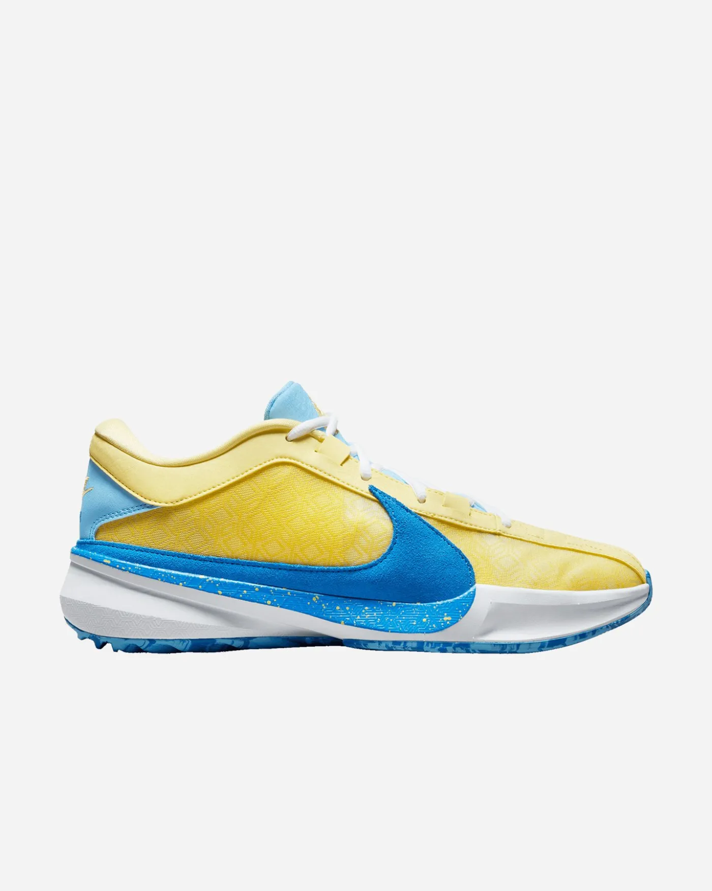 Ti presentiamo la scarpa Freak 5, con una velocità incredibile per i primi passi fatali e di un’ammortizzazione elastica in grado di sopportare il gioco pesante per tutta la partita, ti sentirai come il Greek Freak. L’unità Air Zoom sull’avampiede, caricata dall’alto, offre ritorno di energia e resistenza e dona forza al primo passo per passare facilmente dal perimetro al canestro. Il Greek Freak ha bisogno di un design che assicuri la massima aderenza per resistere alla difesa. Il sistema di contenimento interno offre una calzata più dinamica che limita i movimenti all’interno della scarpa senza stringere. L’ intersuola in schiuma Cushlon offre una schiuma stampata a compressione aggiornata per una calzata migliore e un’andatura più reattiva sotto il piede. Trazione spalmata sul tallone per una maggiore sensibilità in campo che aiuta a mantenere l’aderenza a terra, mentre la trazione multidirezionale aiuta a puntare il piede e scattare.